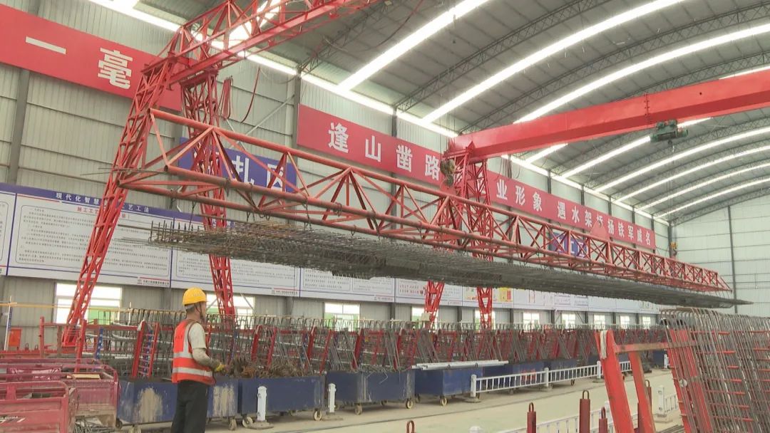 记者在水洪预制梁场看到,一片完整的箱梁经过钢筋绑扎、模板安装、混凝土浇筑和智能张拉压浆等一系列工序,55个小时就可以运往施工现场安装。这个梁场每天可生产8片箱梁,效率是传统梁场的三倍。