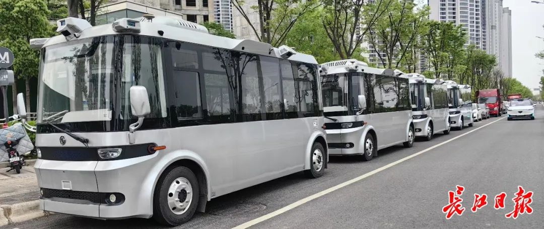4月10日,武汉经开区军山新城,一辆辆银色东风悦享自动驾驶接驳小巴正在忙碌穿梭。这是武汉又一新的自动驾驶应用场景,东风悦享的4条自动驾驶小巴接驳线路正式投入运营。即日起,市民在相关线路乘车点等候,就可以免费体验“未来出行”。