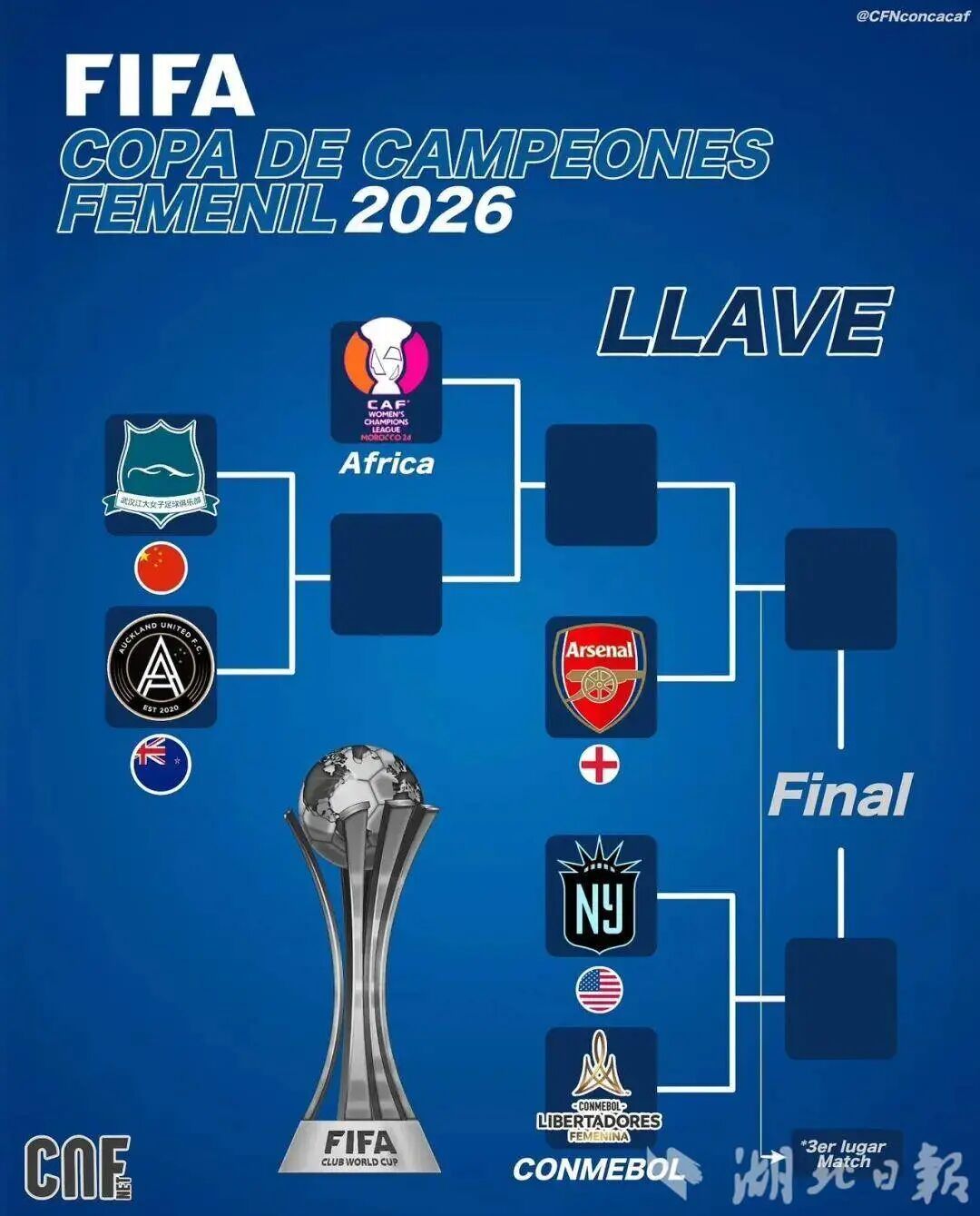 此前,国际足联(FIFA)正式公布2026年国际足联女足冠军杯赛程,并确定首轮赛事场地为武汉体育中心。