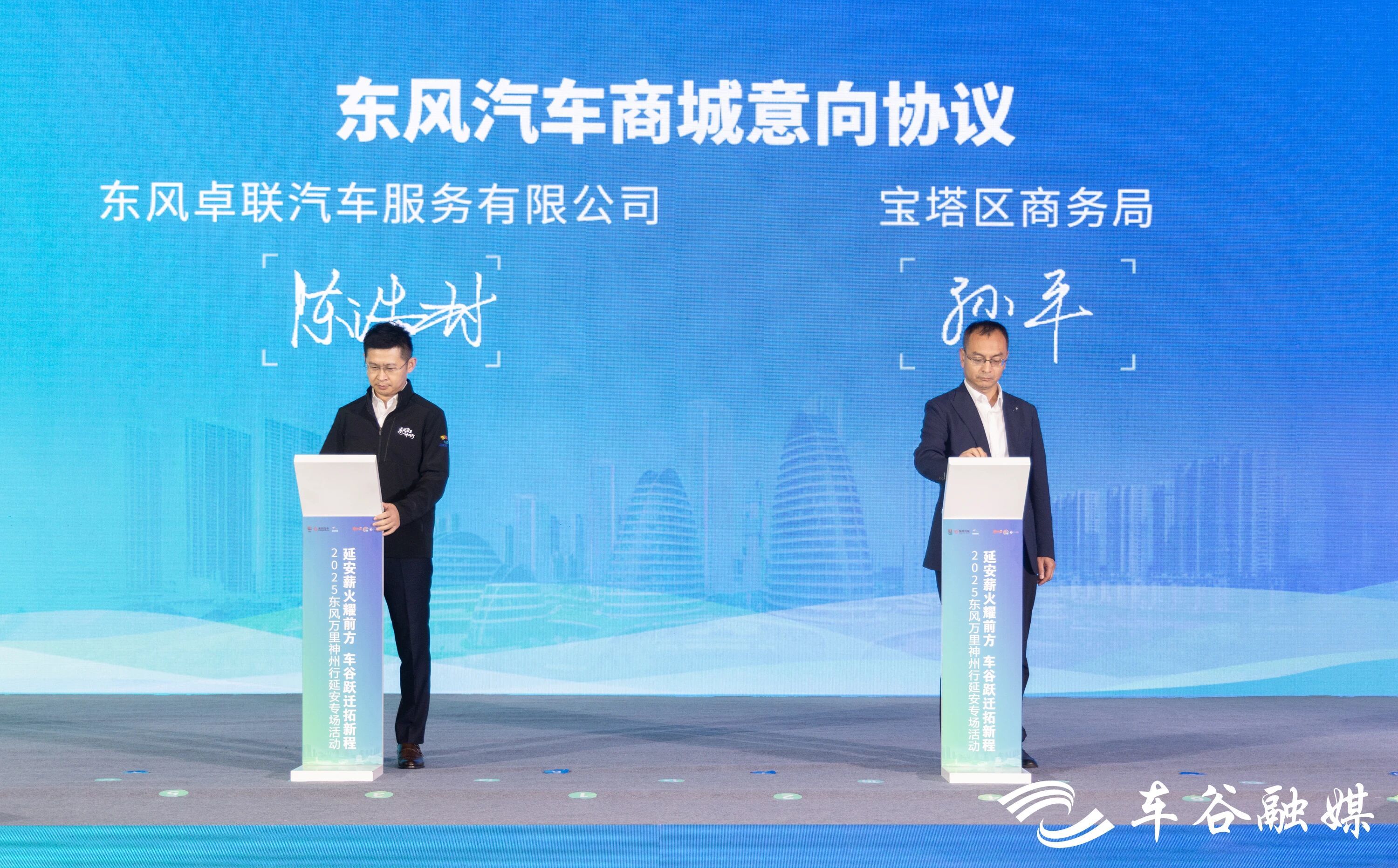 现场,东风卓联汽车服务有限公司与延安市宝塔区商务局签订东风汽车商城意向协议。9月22日,延安首家东风汽车商城将正式揭牌,汇聚东风公司全系自主新能源品牌,为客户提供线上线下一体化的一站式购车服务。