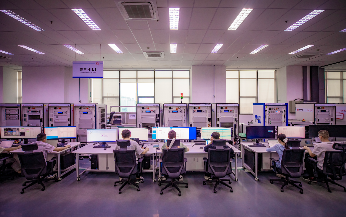 ▲工程师们正在进行硬件在环仿真(HIL)测试。
