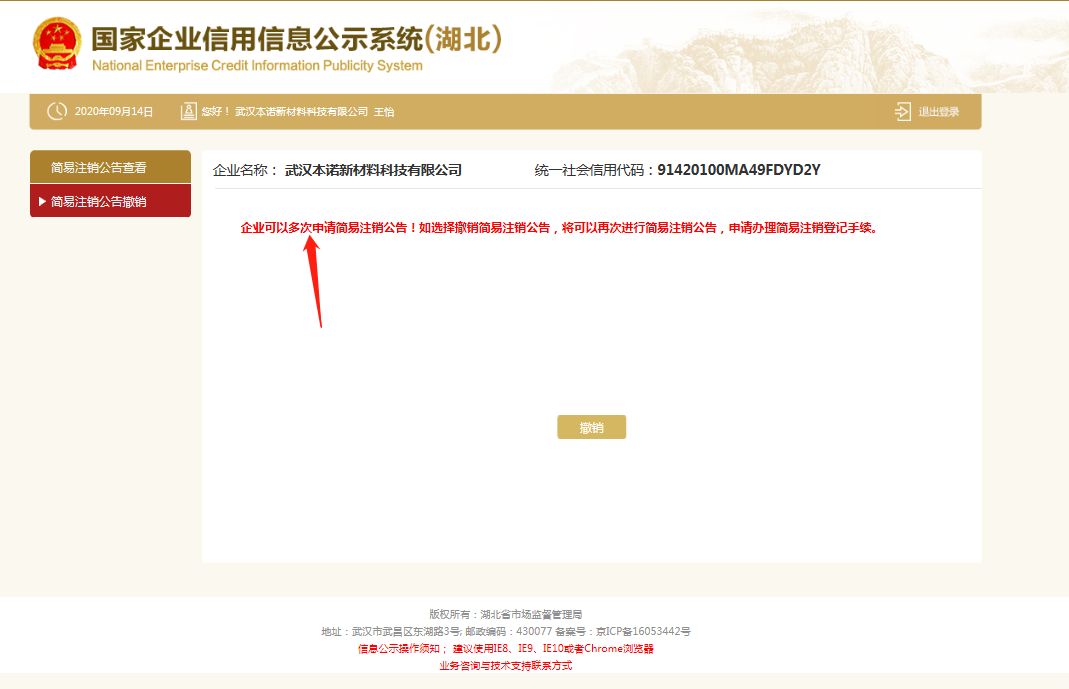 附图1:发布简易注销公告网址:企业信用信息公示系统http://hb.gsxt.gov.cn/index.html