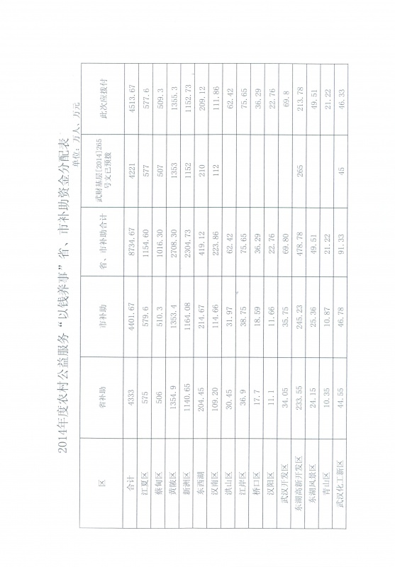 2014年度第一批农村公益性服务“以钱养事”省级补助资金-武财基层[2014]457号