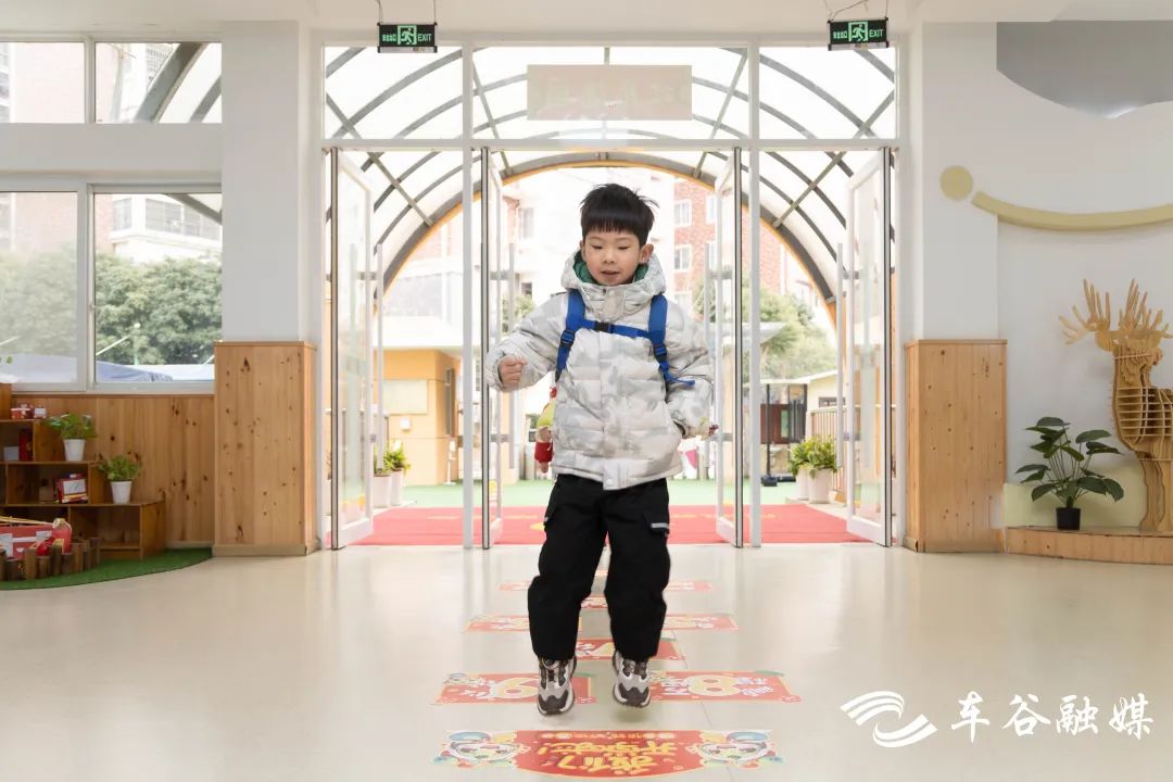 军山凤凰苑幼儿园,迎新活动同样别出心裁。“开学通道”“跳格子”和“新年棒棒糖”……每一个跨栏、格子、糖果,满载着教师们对孩子们的美好祝福,每个班级的教室门口,各班老师还布置了不同创意的迎新环境。