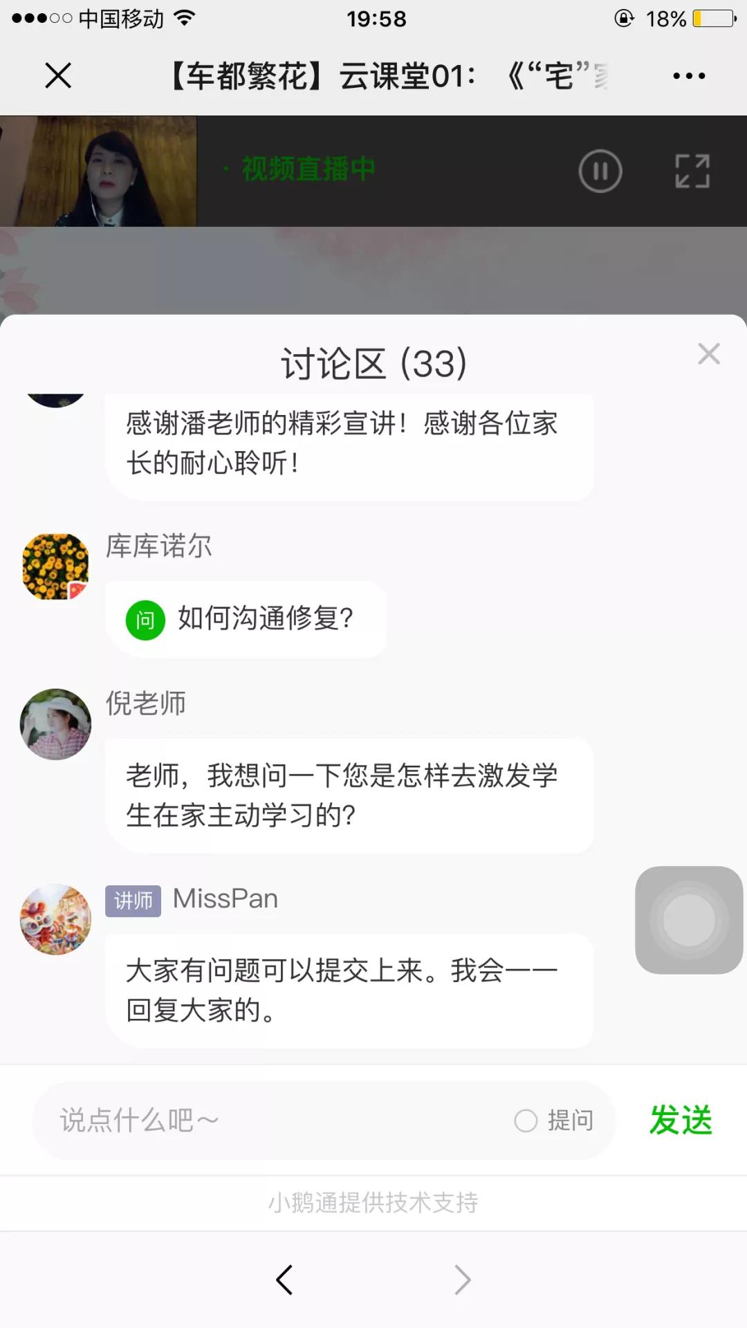 区妇联还在车都她之声微信公众号上设立专栏,上线已授课内容,方便广大家庭随时回看。