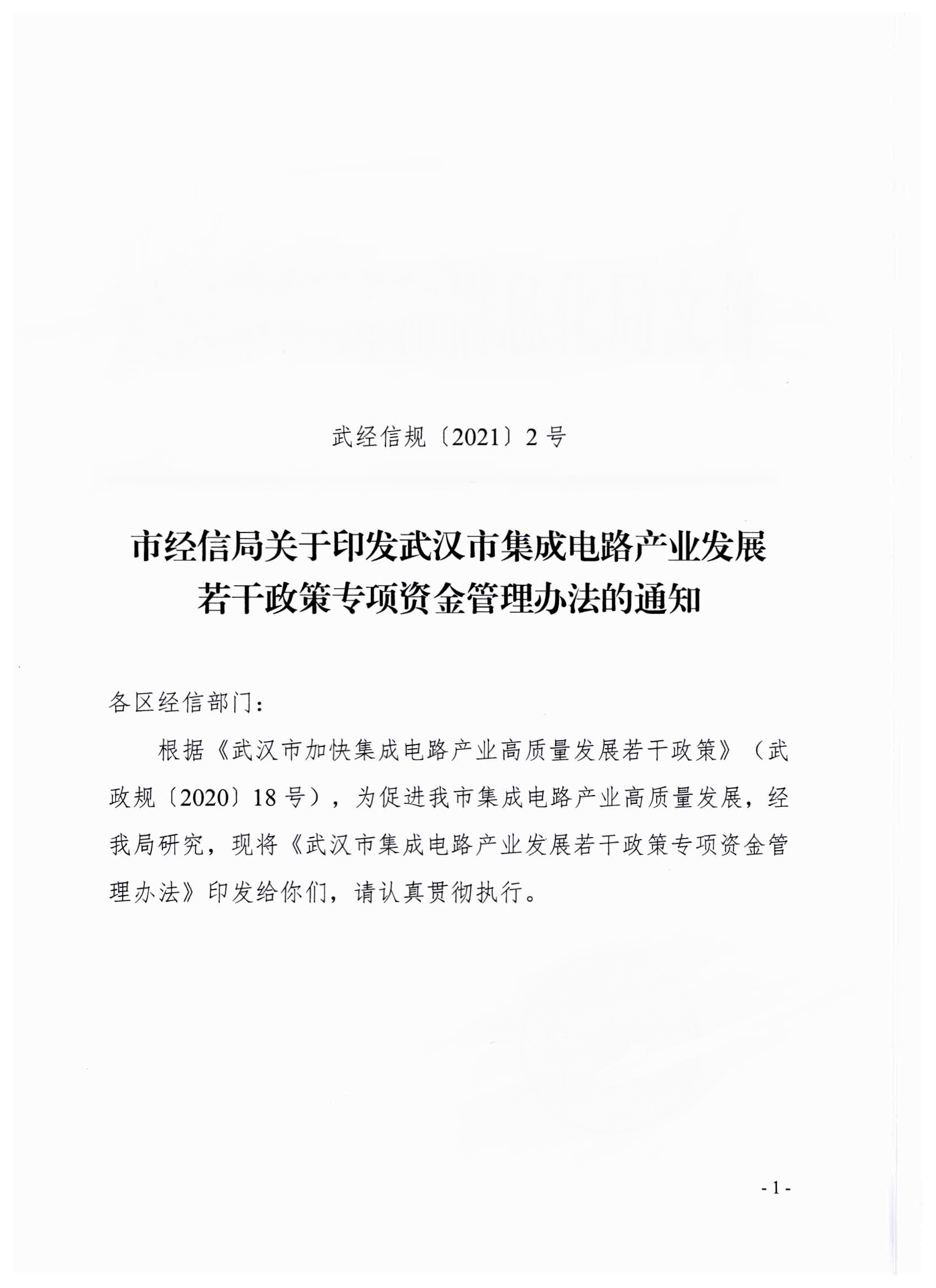 市经济和信息化局关于印发武汉市集成电路产业发展若干政策专项资金管理办法的通知