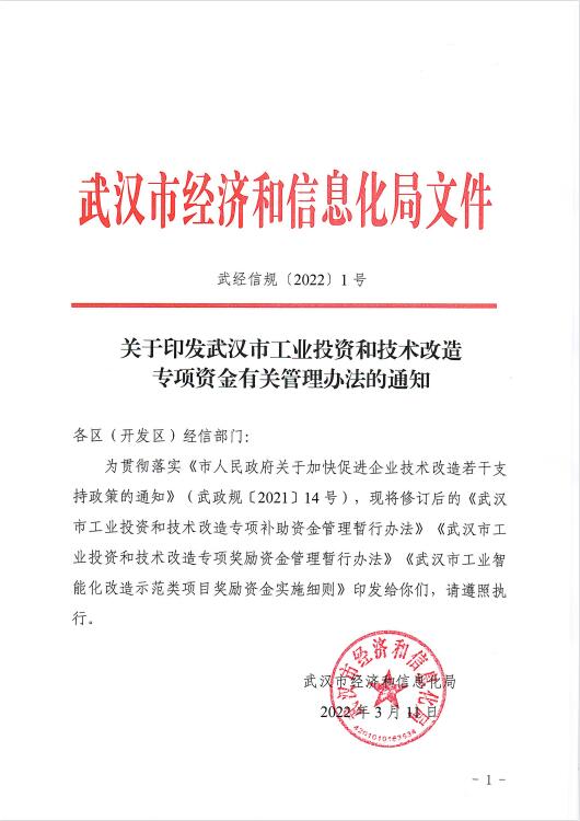 市经信局关于印发《武汉市工业投资和技术改造专项资金有关管理办法》的通知