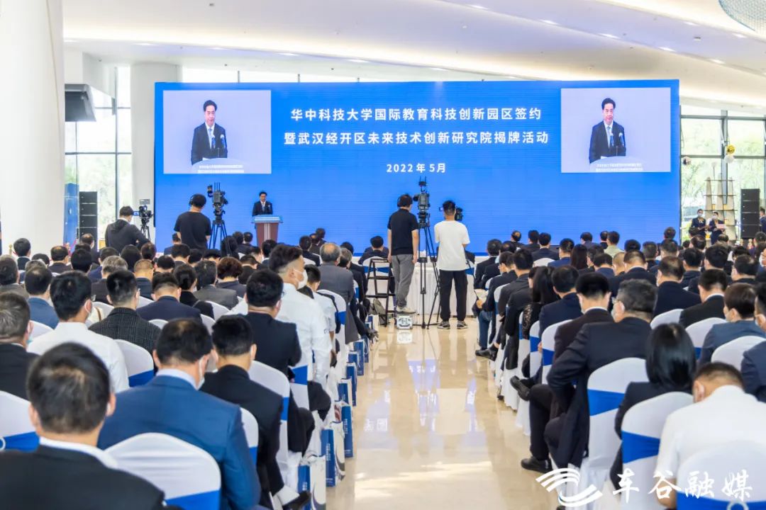 5月18日,在武汉经开区与华中科技大学战略合作协议签约仪式上,武汉经开区未来技术创新研究院揭牌,武汉经开区与华中科技大学携手推动校地深度融合发展,促进学研产用协同发展结下硕果。
