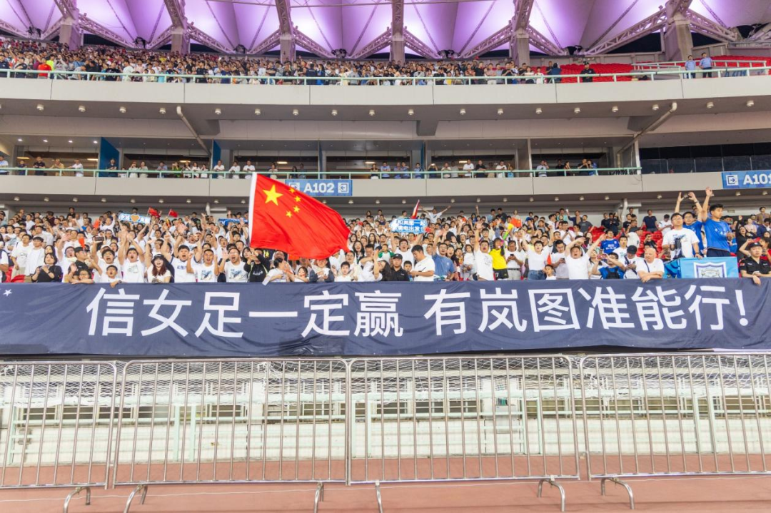 ▲岚图汽车粉丝团现场为女足呐喊助威