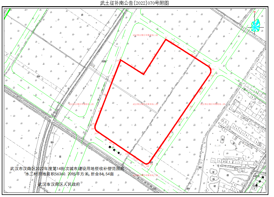 经土地现状调查和社会稳定风险评估,拟征收汉南区邓南街道水二村的集体土地5.6360公顷,其中:农用地5.6360公顷(含耕地5.2226),建设用地0公顷,未利用地0公顷,并于2022年6月10日发布了《土地征收预公告》(汉土告字[2022]070号)。