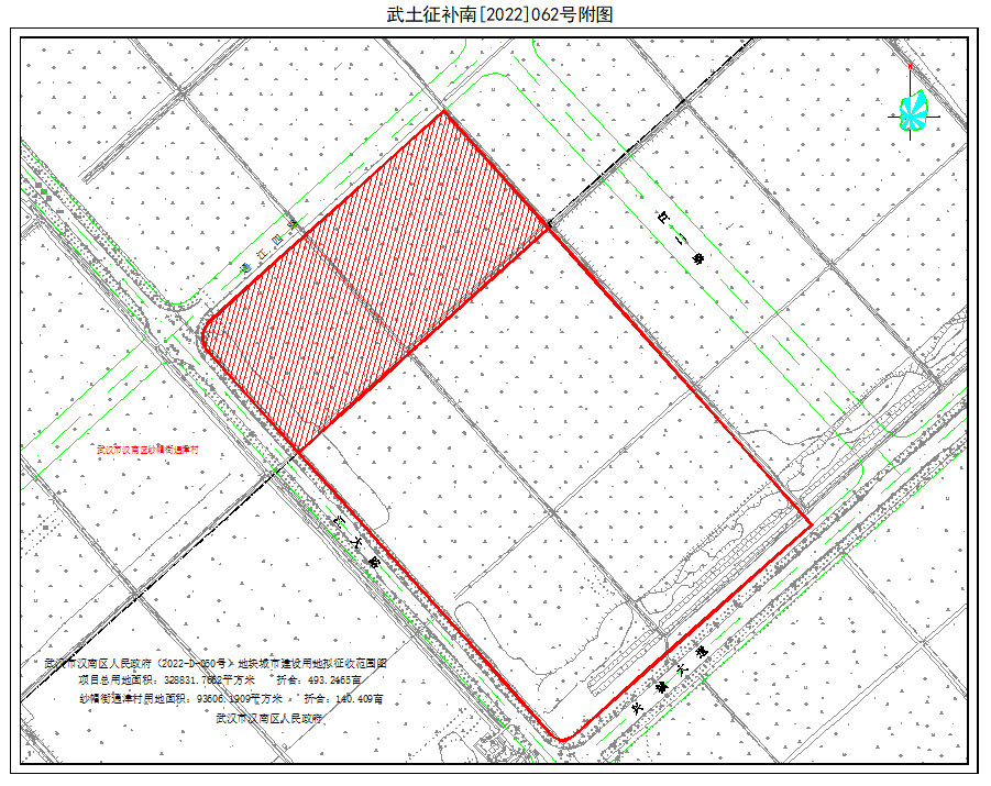 经土地现状调查和社会稳定风险评估,拟征收汉南区纱帽街道通津村的集体土地9.3606公顷。其中:农用地9.3388公顷(含耕地9.1851公顷)、建设用地0.0218公顷、未利用地/公顷,并于2022年6月1日发布了《征收土地预公告》(汉土告字[2022]062号)。