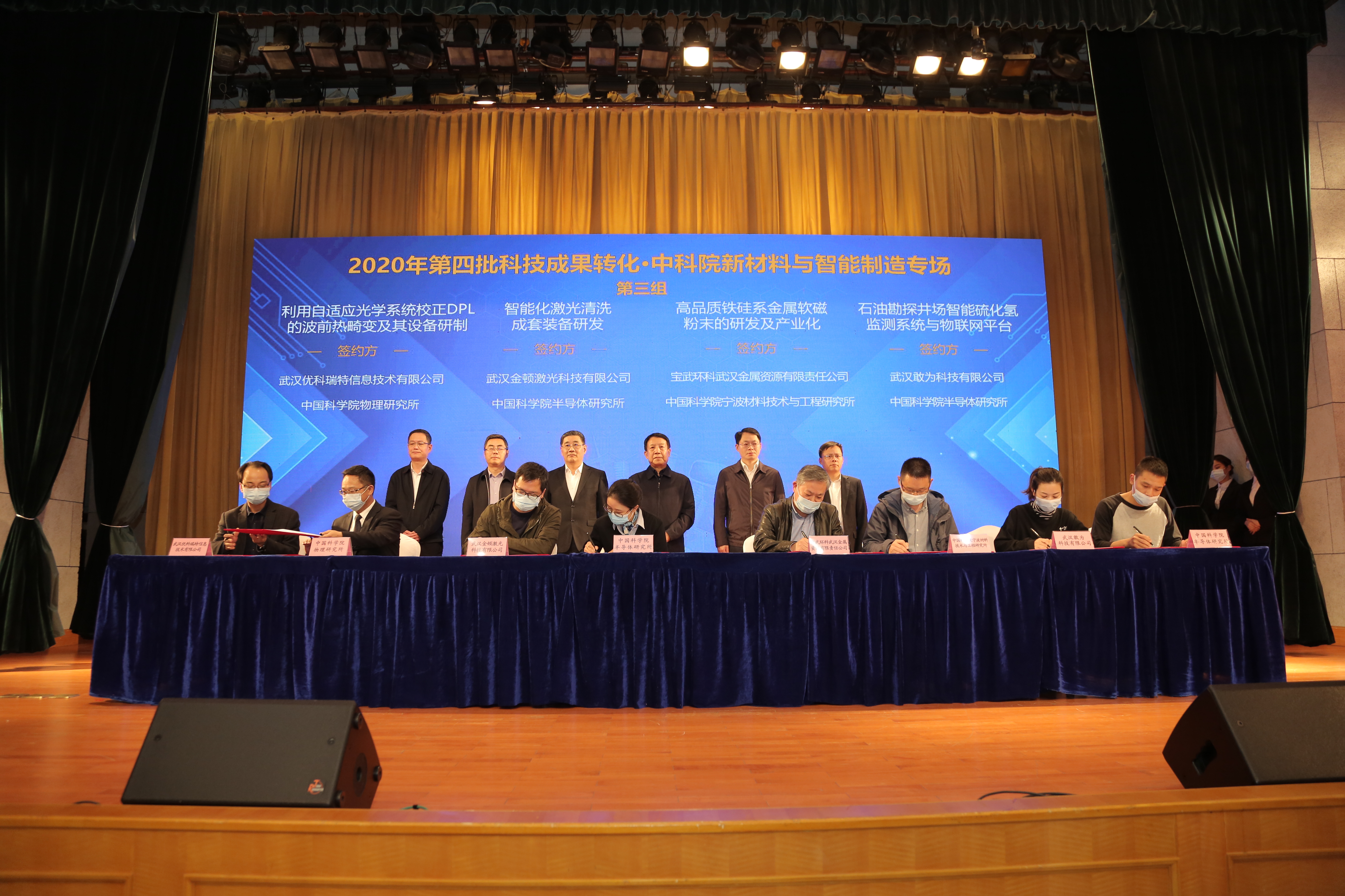 10月19日,由武汉市科学技术局、市科技成果转化局、中科院武汉分院、武汉经开区联合主办的,2020年第四批科技成果转化·中科院新材料与智能制造专场签约活动在我区成功举行。