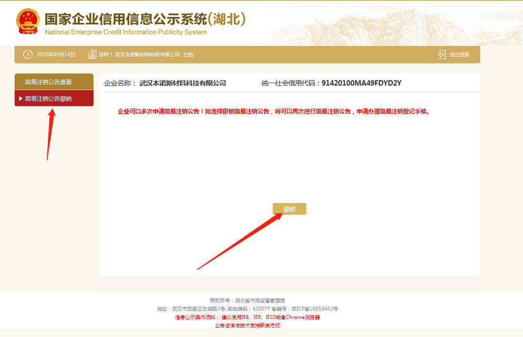 附图1:发布简易注销公告网址:企业信用信息公示系统http://hb.gsxt.gov.cn/index.html