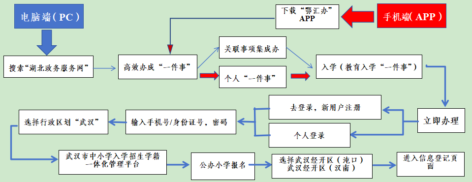 答:2025年,全市中小学新生入学统一使用湖北省政务服务管理平台进入“武汉市中小学入学招生学籍一体化管理平台”(以下简称“市级平台”)进行入学信息的登记。具体可通过两条路径完成: