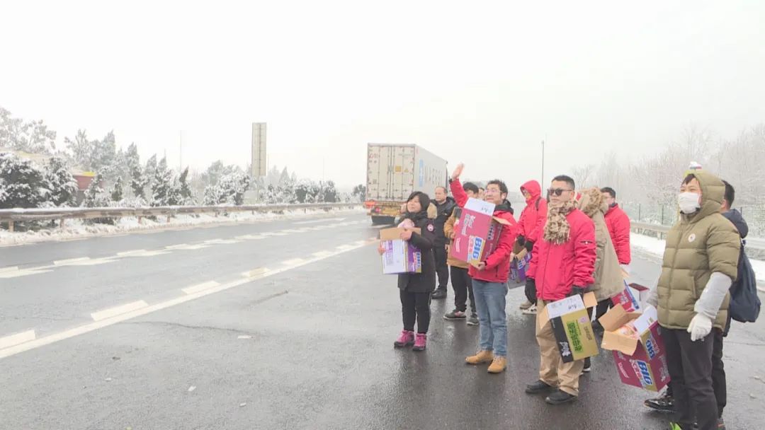 当天,沌阳街土地服务中心20名志愿者为滞留高速的司乘人员送去热水、方便面、饼干、面包等物资200余件。