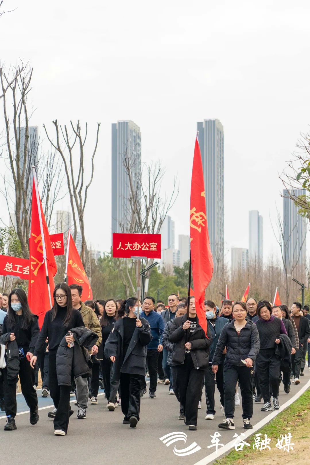 迎着朝阳,上千名车谷党员干部从春笋广场出发,精神抖擞、昂首阔步,沿着川江池绿道,途径鲁迅书店、通顺大道、轩辕书社、军山新城,一路解锁好春光,以昂扬姿态开启龙年新征程。