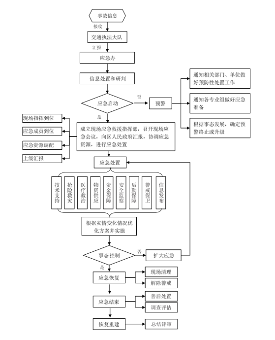 保障运送事故救援人员、物资器材所需的交通工具,保障救援道路、水路的畅通;依法对相关道路、水路采取交通管制。由区住建局(交通运输局)综合协调,区交通大队、长江海事局、水上公安派出所、区港航事业发展中心等单位配合。