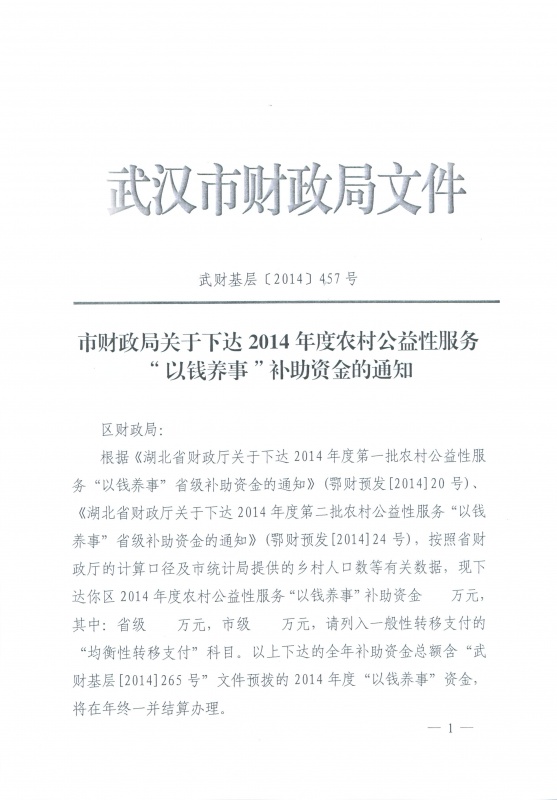 2014年度第一批农村公益性服务“以钱养事”省级补助资金-武财基层[2014]457号