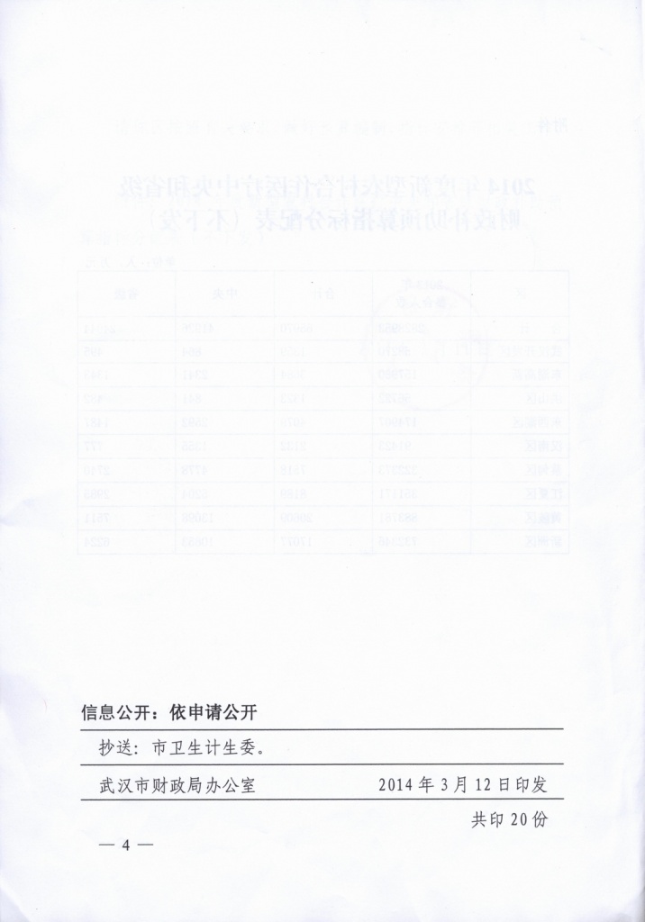 2014年新型农村合作医疗中央和省级财政补助-武财社[2014]138号