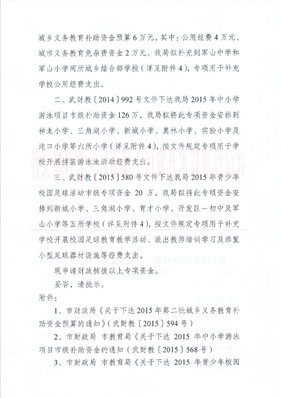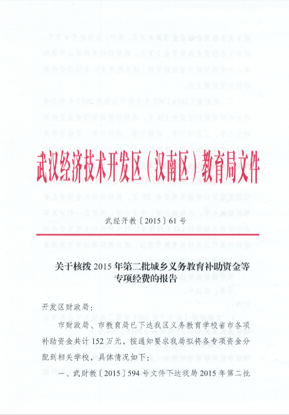 开发区教育局关于核拨2015年第二批城乡义务教育补助资金等专项经费的报告