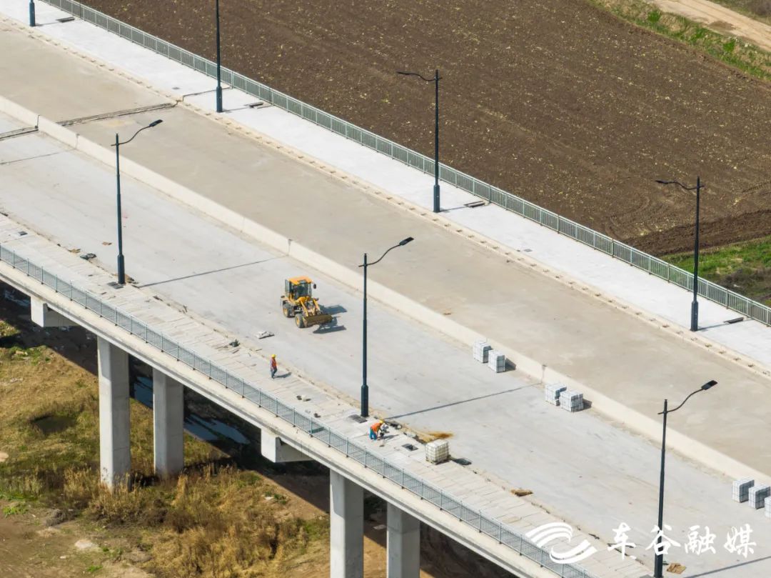 目前,该项目主体工程已完成约86%,桥梁段正在进行桥面系及其附属工程施工路基段施工也接近尾声。