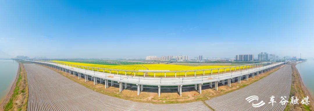油菜花海中,武汉“最美观江高架桥”建设稳步推进