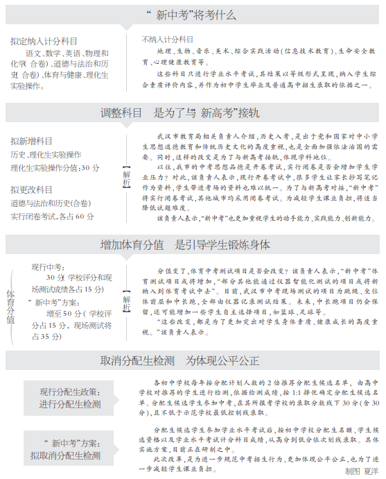 武汉市教育局解读“新中考”方案 拟定历史纳入计分科目 体育增至50分