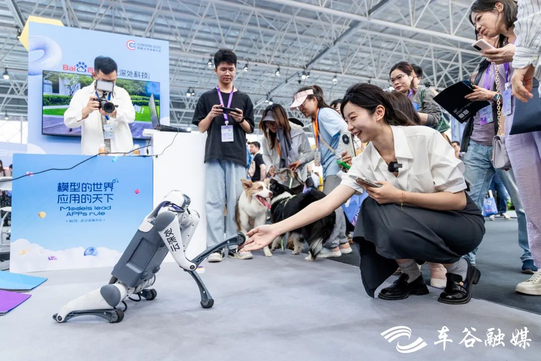4月25日,Create2025百度AI开发者大会在武汉经开区举办,5000平方米的AI展区内,奇点实验室、AI原生地、未来引力场、生态跃迁、AI无限空间5大创意“游乐场”看点十足,不仅有目前大火的人形机器人、机器狗,还有一键生成专属数字人AI主播、戴上AR眼镜畅游荆楚……现场展示的前沿产品技术让参观市民“一键”开启赛博蹦迪模式,大呼过瘾。